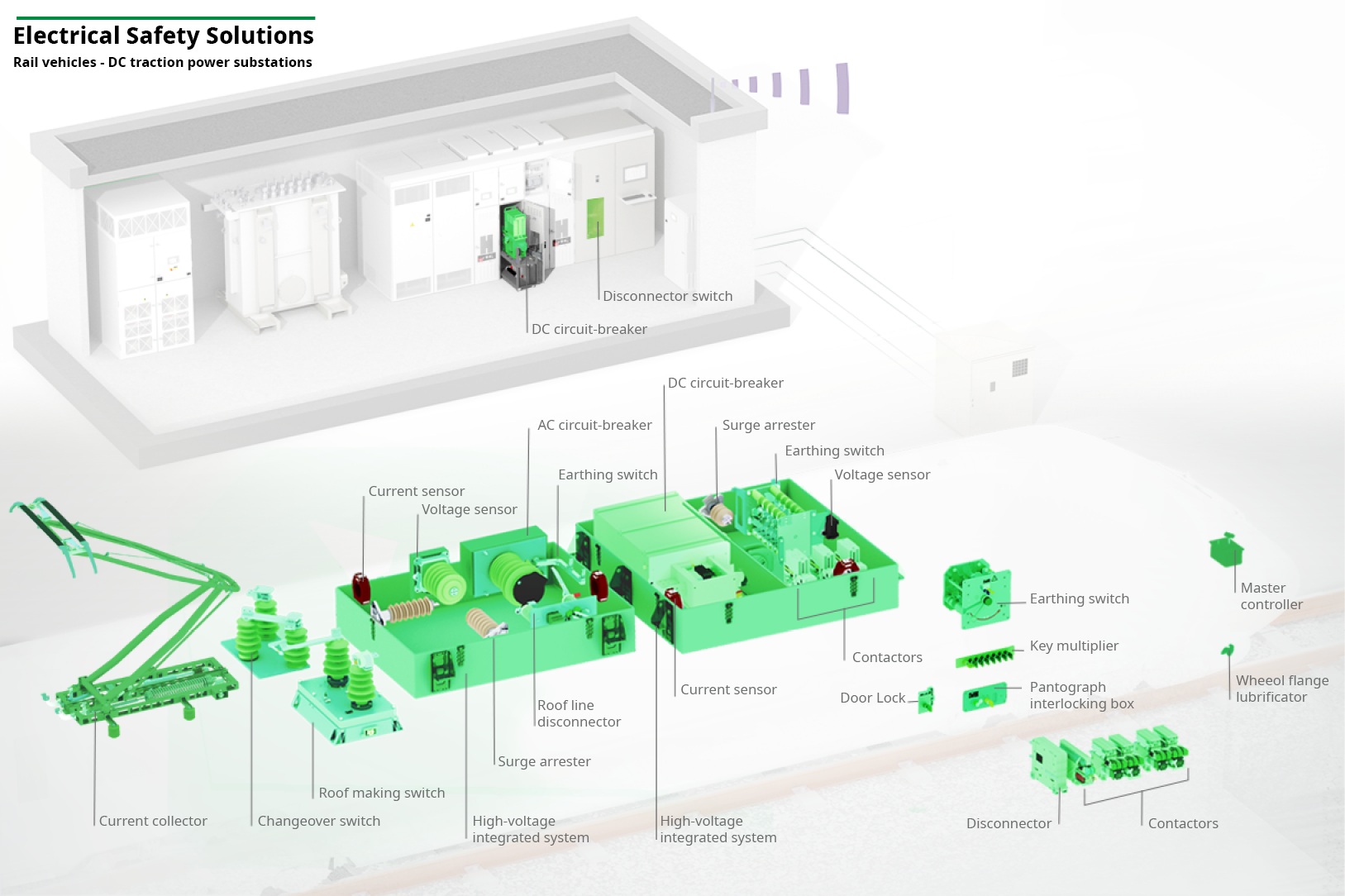 Our components and solutions equip rail vehicles and DC traction power substations, as well as high-power equipment used in energy-intensive industries and renewable energy production.